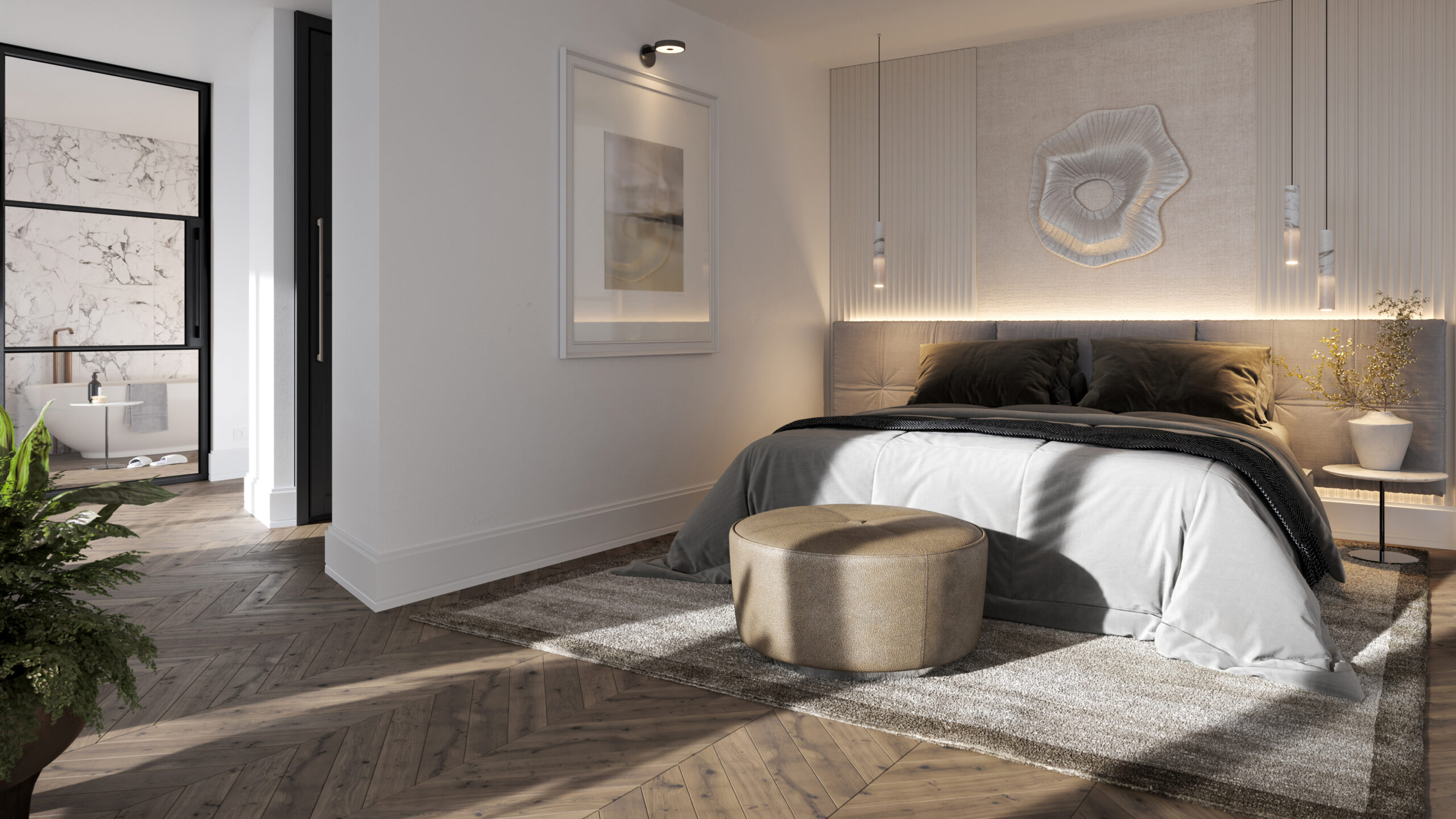 - XXL masterbedroom met walk-in badkamer, walk-in closet en aangrenzend terras