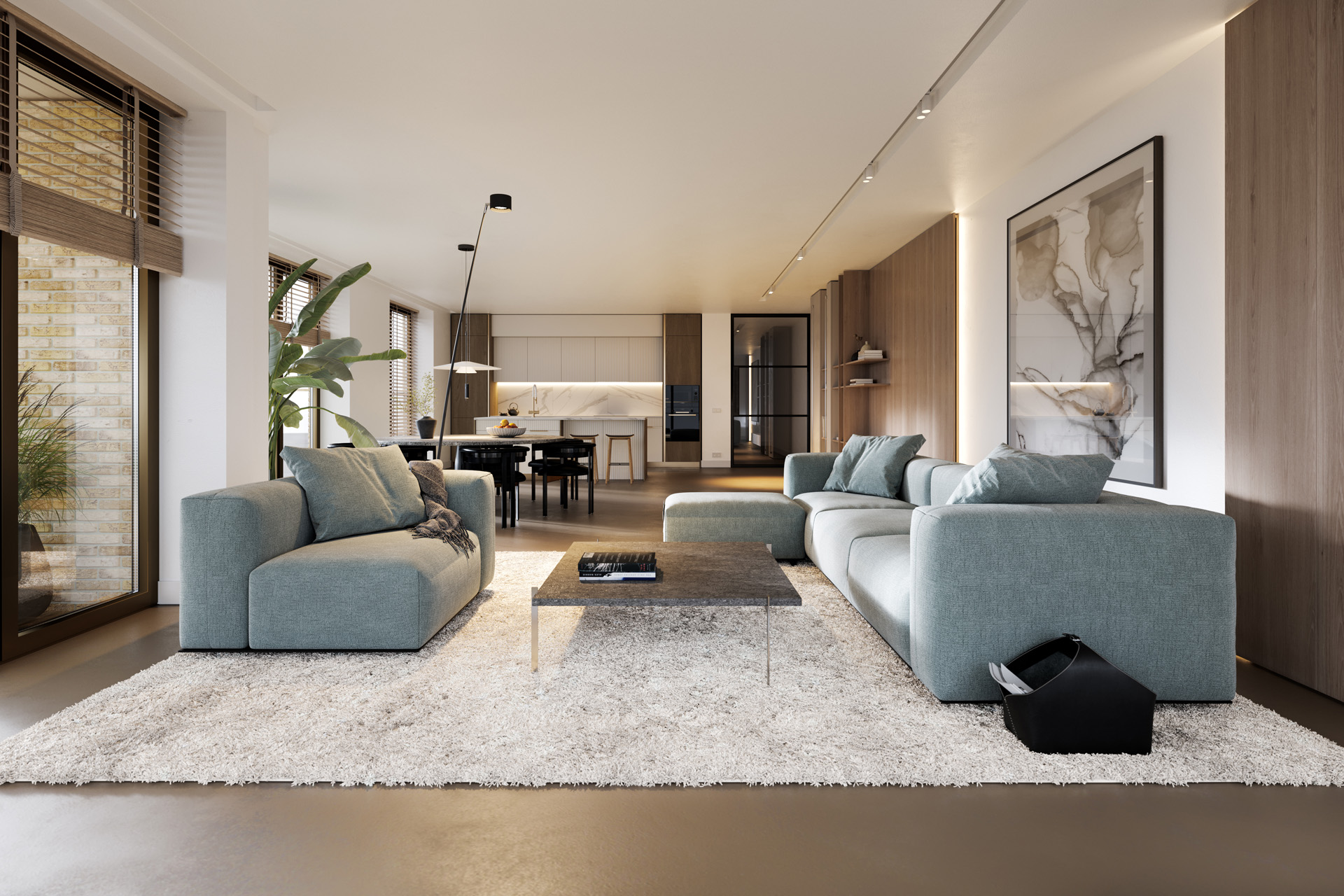 De keuken wordt casco opgeleverd met alle aansluitpunten voor water, elektra en afzuiging, zodat u volledig de vrijheid hebt in ontwerp en afwerking. Alle sanitaire ruimten, waaronder badkamers, separate toiletten en eventueel extra douches, worden volledig afgewerkt. Hierbij wordt gebruikgemaakt van Porcelanosa kranen, sanitair en tegels. Voor de vloeren in grootformaat, in een rustige en verfijnde natuursteenlook of haast minimalistische, moderne betonlook. Inloopdouches hebben veelal glazen wanden met slanke profielen en geïntegreerde drain. Wastafels in solid surface of keramiek worden geleverd met duurzame onderkasten en kranen van hoge kwaliteit. De wanden van de appartementen worden sausklaar opgeleverd, de plafonds worden gespoten. Gangen krijgen een akoestische plafondafwerking die rust en harmonie brengt, met materialen geïnspireerd op het duinlandschap. Indelingsopties zoals extra bergruimte of aangepaste badkamers zijn mogelijk. Het Duinhil-team adviseert en begeleidt u daarbij.