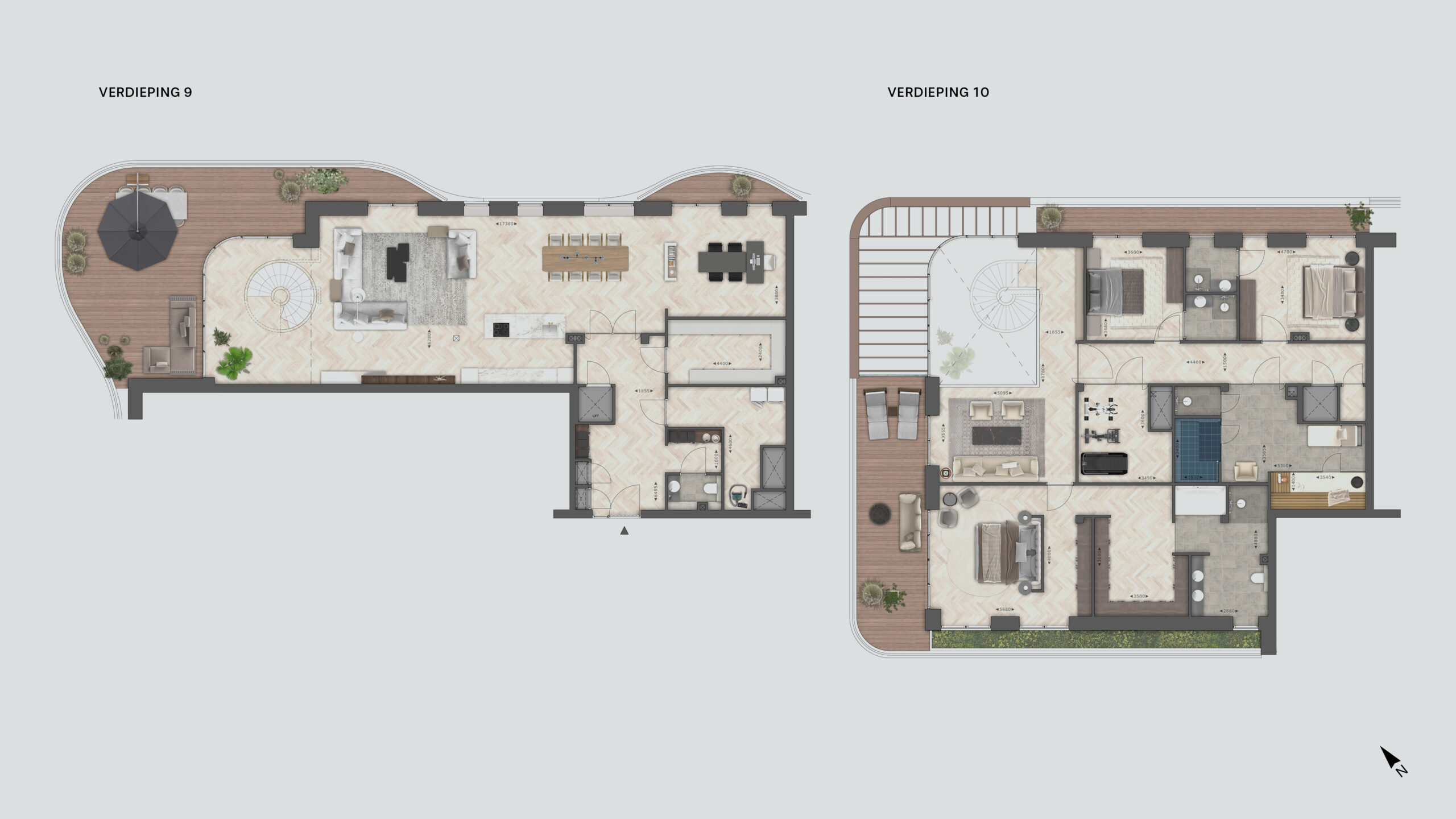 Een indrukwekkend dubbellaags penthouse van ca. 350 m², ontworpen om te excelleren in stijl en comfort. En om uit te blinken in rijkdom aan ruimte en luxe. De eerste laag biedt een open keuken met eiland, een royale lounge met eetruimte én een extra ruimte voor een werkplek of gameroom. Van hieruit wordt naadloos het immens grote terras betreden dat in de middag en de avond in de zon ligt. Op de bovenverdieping wordt u aangenaam verrast door een XXL masterbedroom met walk-in badkamer, walk-incloset en een tweede terras. Daarnaast beschikt u nog over twee slaapkamers met eigen badkamers, een privégym en wellness ruimte. Het zal u niet verbazen dat dit volumineuze appartement u prachtig uitzicht biedt op zee en het duinlandschap.